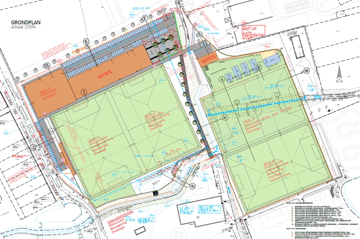 Studiebureau Jonckheere stond in voor het ontwerp en de opvolging van de aanleg van de omgevingswerken, de waterhuishouding en de voetbalvelden.